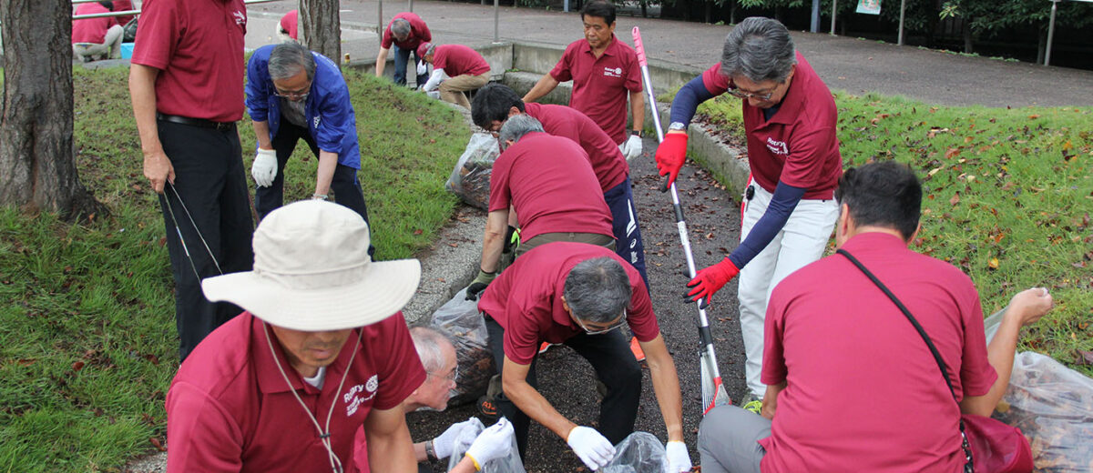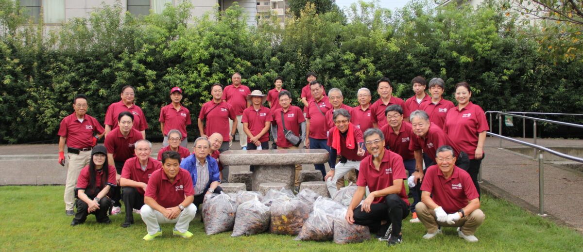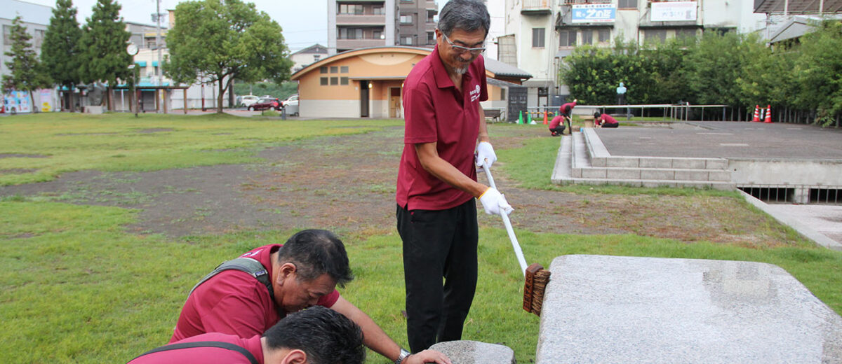早朝例会を開きパトリア前中央公園の石製のテーブルと椅子をきれいに磨き、周辺の落[...]