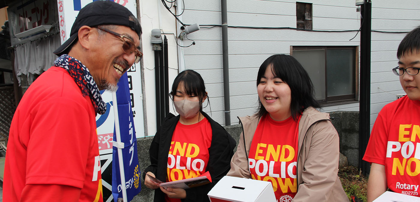 「日田天領まつり」で賑わう豆田町で、11月9日ポリオ根絶キャンペーンを実施しました。クラブ初の試みです。