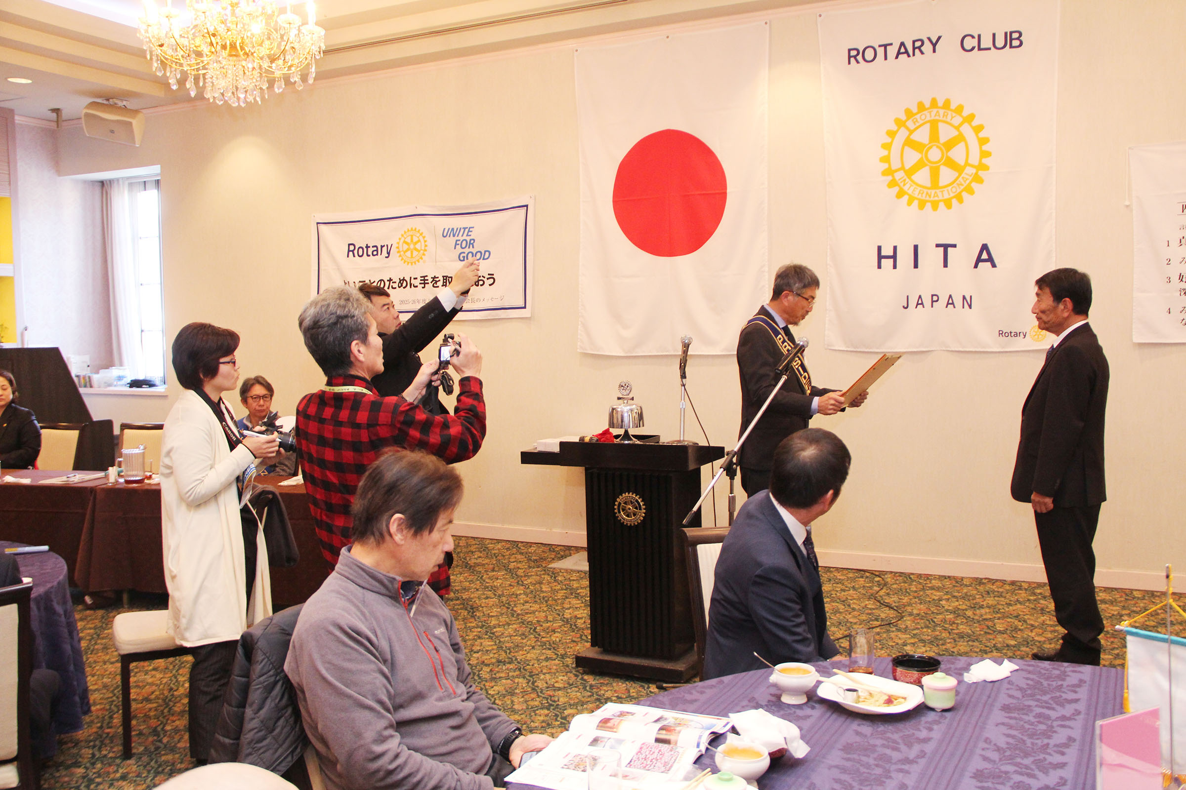 J日田梨栽培や輸出拡販に尽力 Aおおいた日田梨部会元会長であり、永年日田梨の栽培と販売に力を注いできた梶原 智俊(かじわら ちとし)さんに、職業奉仕賞を贈りました。